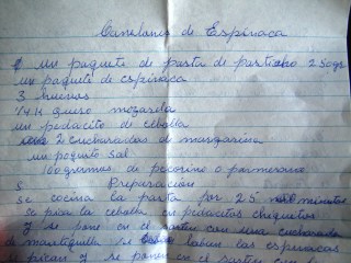 Esta receta la encontramos en casa de mi hermano, escrita de puño y letra de mi abuela: