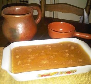Para preparar el mela’o de papelón se parte la media panela de papelón en pedazos pequeños y se coloca en un poquito de agua, se lleva al fuego hasta que se disuelva, se deja reposar y se pasa por un colador fino.