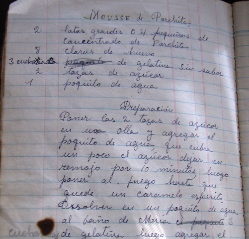 A petición del público, acá les va la receta del Mousse de Parchita de mi abuela tal y como aparece en su «Recetario de Cocina»: